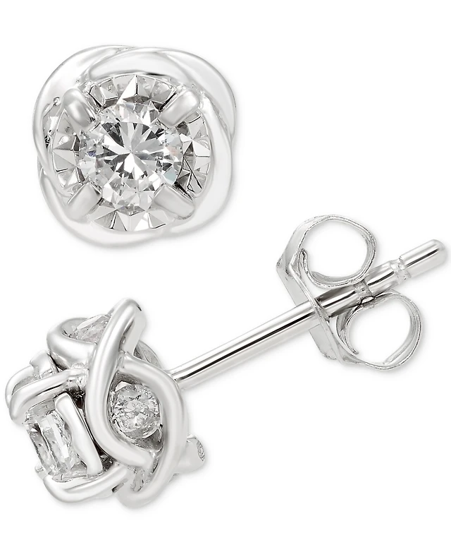 Cubic Zirconia Love Knot Stud Earrings in 10k Gold