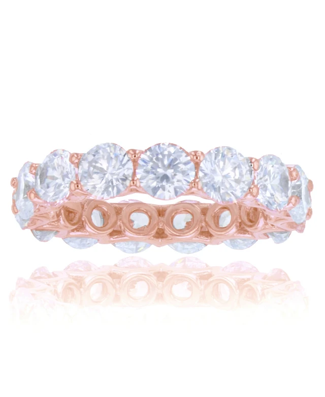White Cubic Zirconias Eternity Band 14k Rose Gold Plated Sterling Silver