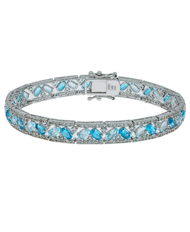 Blue and White Topaz Tennis Bracelet in Sterling Silver