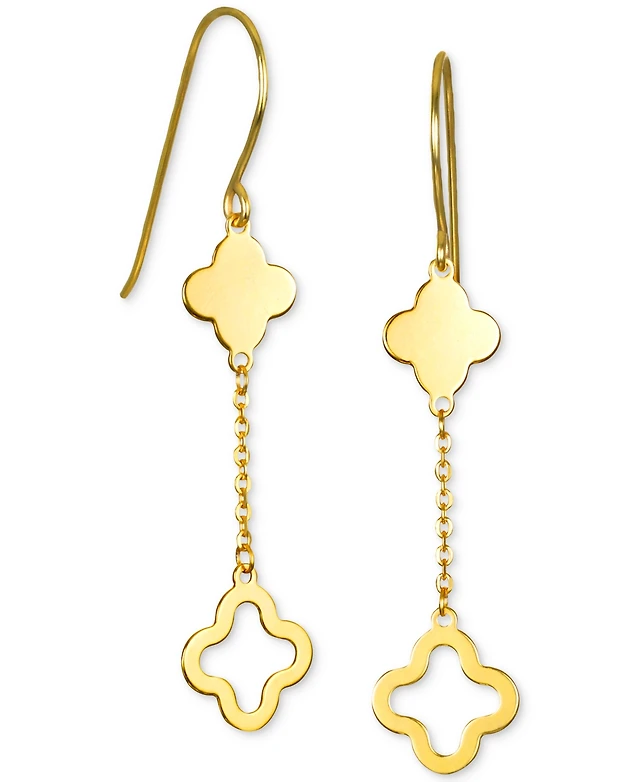 Solid & Silhouette Clover Chain Link Drop Earrings in 14k Gold