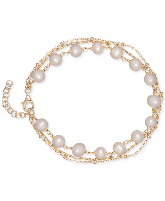 Cultured Freshwater Pearl (6mm) Triple-Strand Bracelet in 18k Gold-Plated Sterling Silver