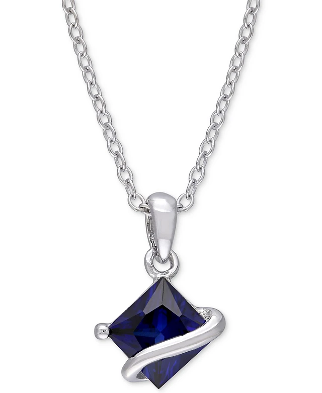 Lab-Grown Blue Sapphire Square 18" Pendant Necklace (1-1/3 ct. t.w.) in Sterling Silver