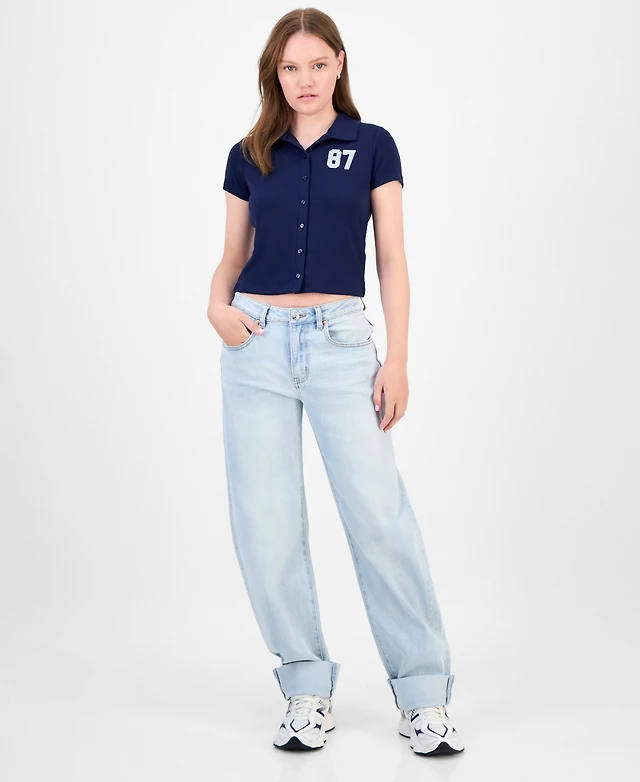Madden Girl Trendy Plus Ultra 90's Bow-Detail Straight Jeans