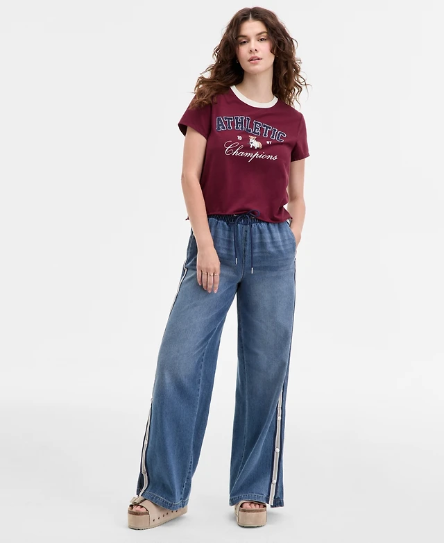 Madden Girl Juniors' Pull-On Side-Snap Wide-Leg Jeans