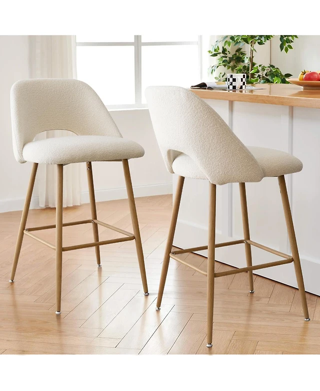 Set of 2 Modern Counter Stools, 24.5'' Boucle Upholstered Chairs with Curved Armrests-Maison Boucle