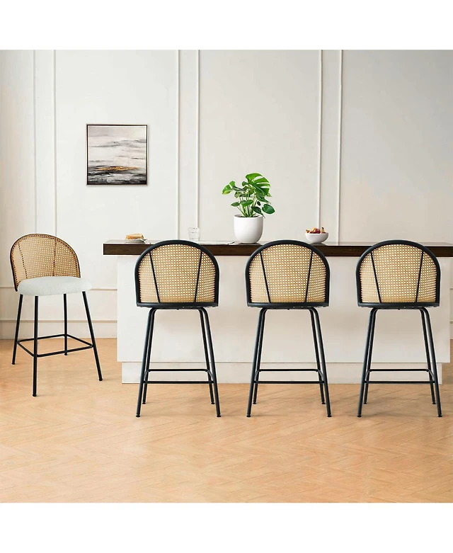 Elegant Minimalist Round Glass Dining Table with 39in Diameter and 4 Rattan Chairs, Modern Space-Saving Kitchen Set-Maison Boucle