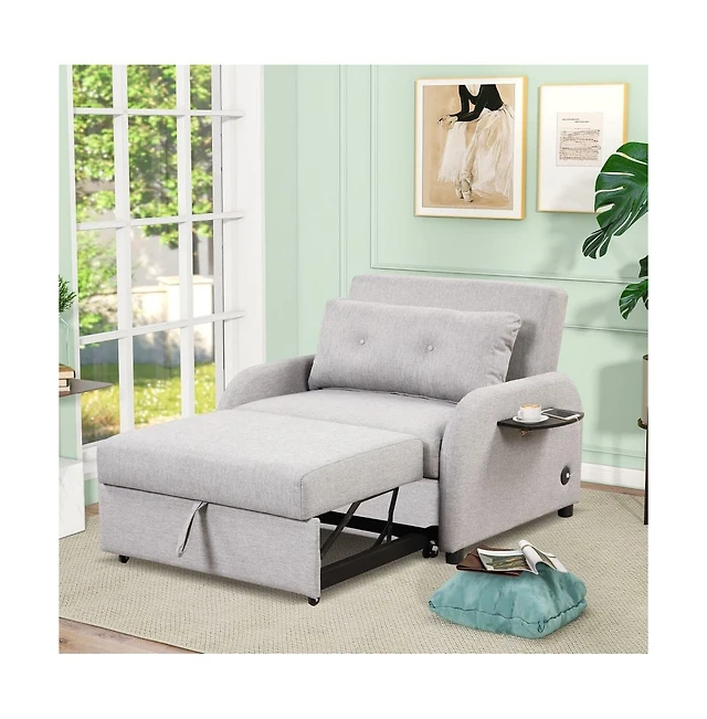 Maison Boucle 56.9" Pull-Out Sleeper Sofa with Usb Ports, Phone Holder & Adjustable Backrest, Convertible Bed Pillows-Maison