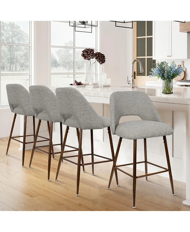 5-Piece Round Glass Dining Table Set for 4, Modern with Upholstered Fabric Chairs and Walnut Metal Legs-Maison Boucle