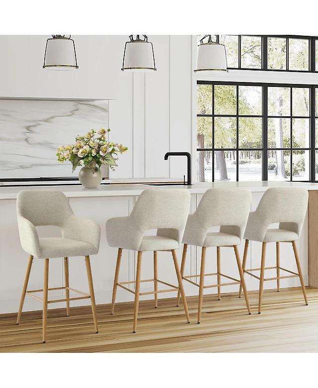 5-Piece Dining Set with 35.5" Round Table, 4 Upholstered Chairs with Metal Legs, Ideal for Small Spaces-Maison Boucle