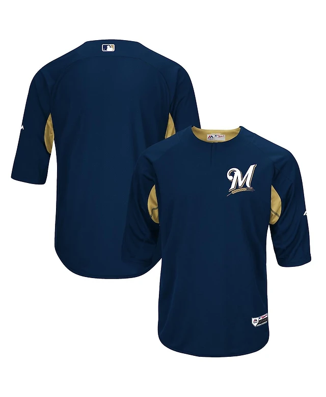 Men's Majestic Navy, Gold Milwaukee Brewers Authentic Collection On-Field 3/4-Sleeve Batting Practice Jersey