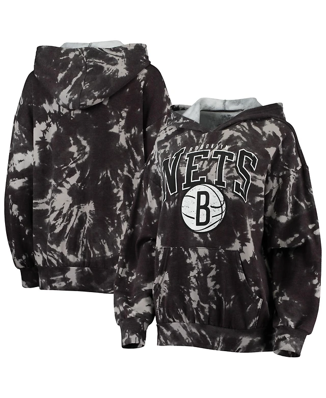 Women's Majestic Threads Black Brooklyn Nets Burble Tie-Dye Tri-Blend Pullover Hoodie
