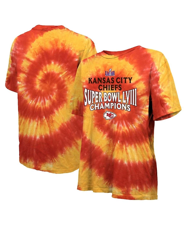 Women's Majestic Red, Yellow Kansas City Chiefs Super Bowl Lviii Champions Oversized Tie-Dye T-shirt