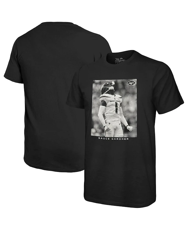 Men's Majestic Threads Sauce Gardner Black New York Jets Oversized Player Image T-shirt