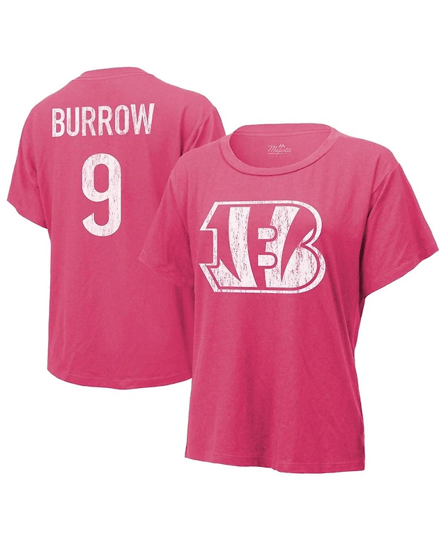 Women's Majestic Threads Joe Burrow Pink Distressed Cincinnati Bengals Name and Number T-shirt