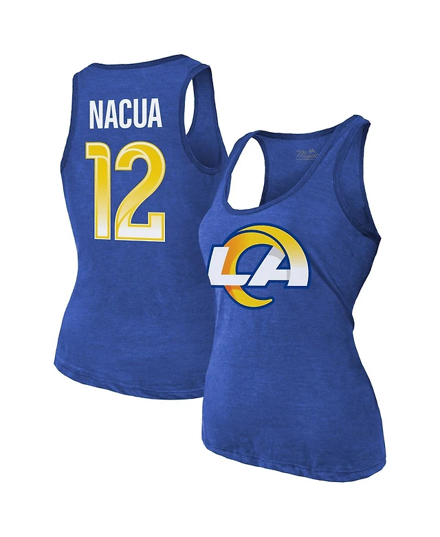 Majestic Women's Puka Nacua Royal Los Angeles Rams Name Number Tri-Blend Scoop Neck Tank Top