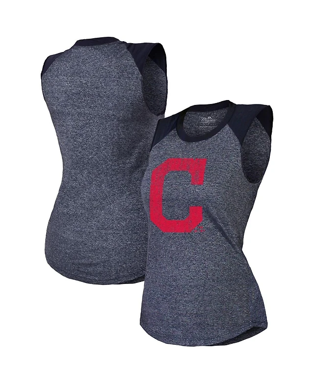 Majestic Threads Women's Navy Cleveland Indians Tri-Blend Raglan Muscle Tank Top