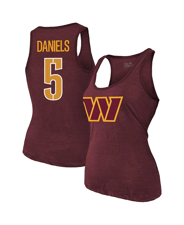 Majestic Women's Jayden Daniels Burgundy Washington Commanders Name Number Tri-Blend Scoop Neck Tank Top