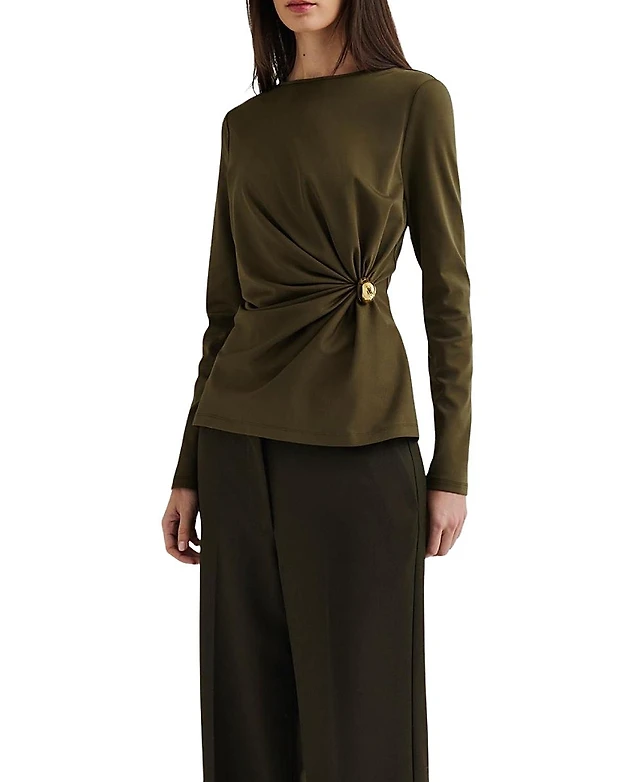 Malina Mailey Jersey Brooch Long Sleeve Top