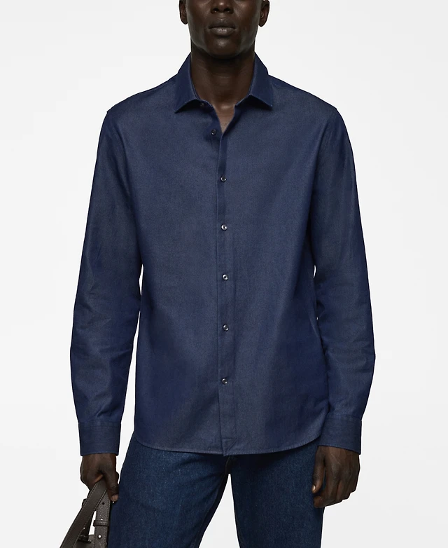 Mango Men's Regular-Fit Cotton Chambray Shirt