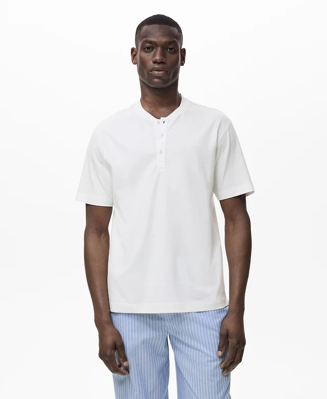 Mango Men's Openwork Knitted Cotton Polo Shirt