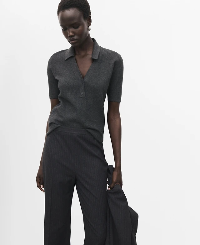 Mango Women's Shirt Collar Fine-Knit Sweater