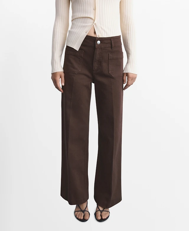 Mango Women's Turn-Up Hem Wide-Leg Jeans