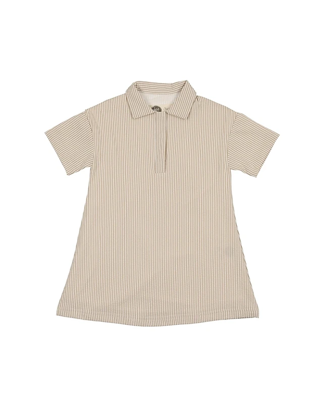 Maniere Girls' Striped Faux Tab Short Sleeve Dress - Little Kid, Big Kid