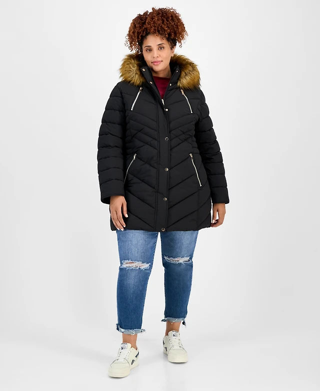 Maralyn & Me Juniors' Plus Faux-Fur Hooded Puffer Coat