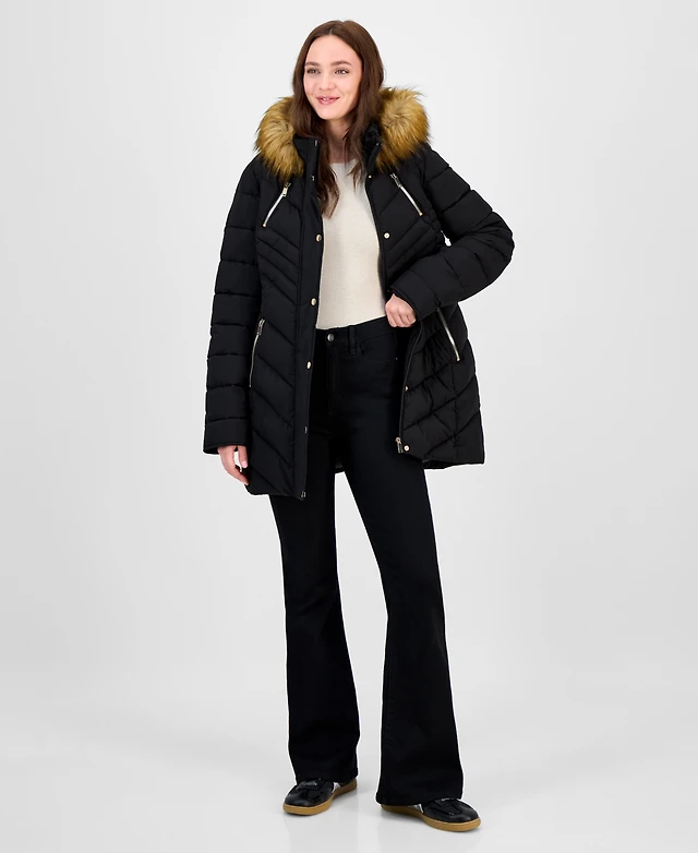 Maralyn & Me Juniors' Faux-Fur Hooded Puffer Coat