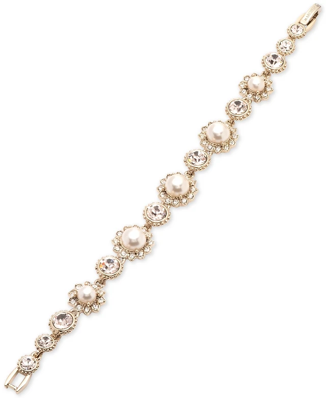 Marchesa Gold-Tone Imitation Pearl & Crystal Link Bracelet
