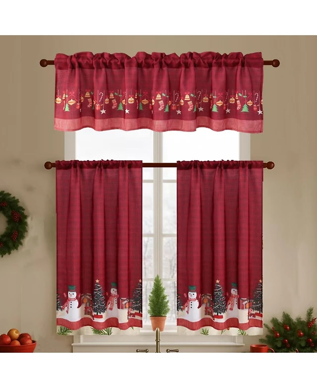 MarCielo 3 Piece Christmas Kitchen Curtains Holiday Window Valance and Tiers, Snowman & Festive Design