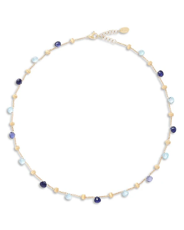18K Yellow Gold Paradise Blue Topaz, Iolite Bead Collar Necklace, 16-17.5"