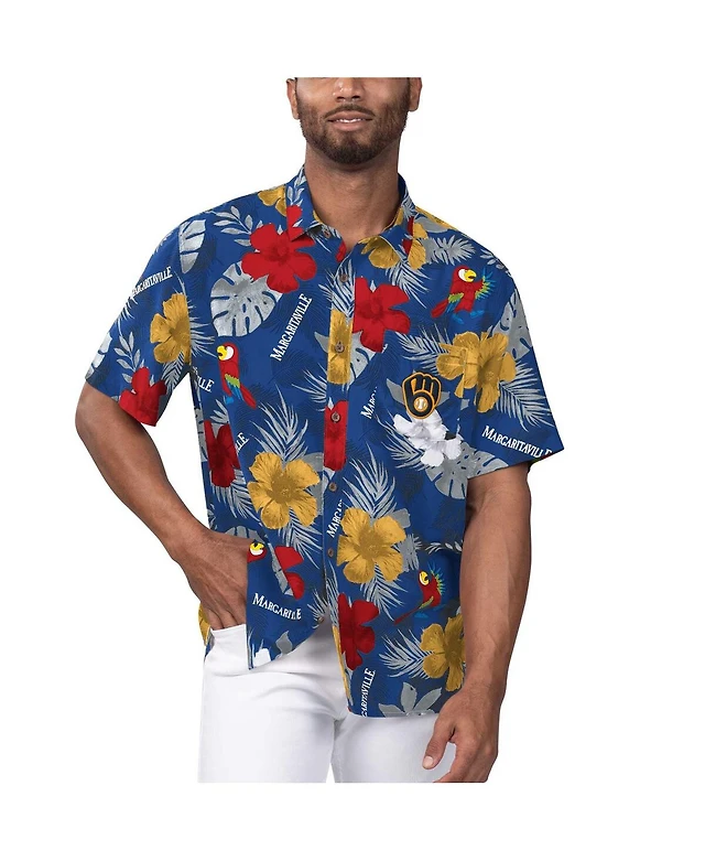 Margaritaville Men's Royal Milwaukee Brewers Island Life Floral Party Button-Up Shirt