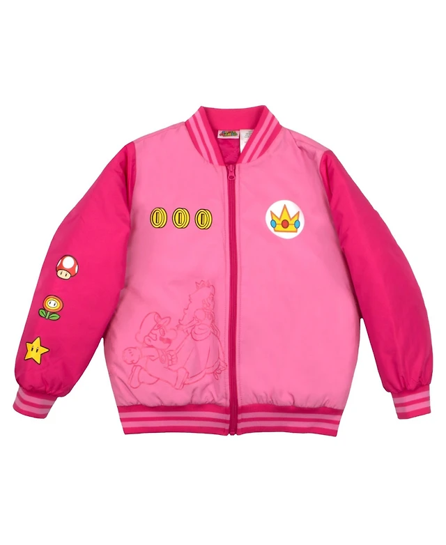Mario Kart Girls Super Princess Peach Casual Zip-Up Graphic Print Bomber Varsity Jacket