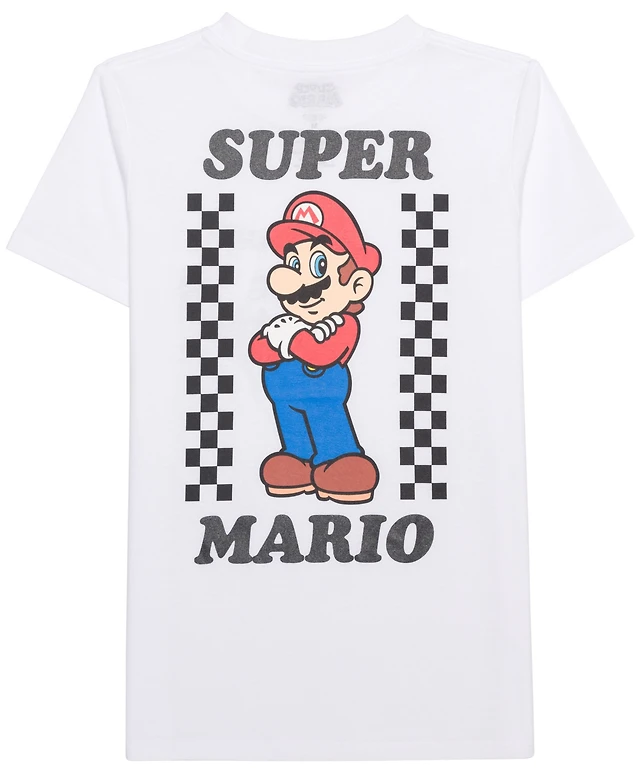 Mario Bros. Boys 5-20 Checkered Striped Short Sleeve T-Shirt