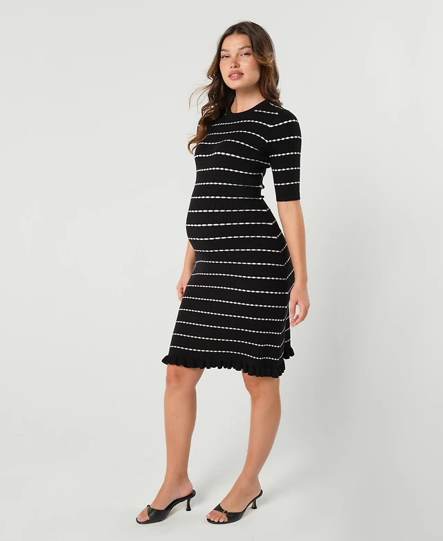 Marion Maternity Knee Length Striped Cotton Knit Nursing Sweater Dress