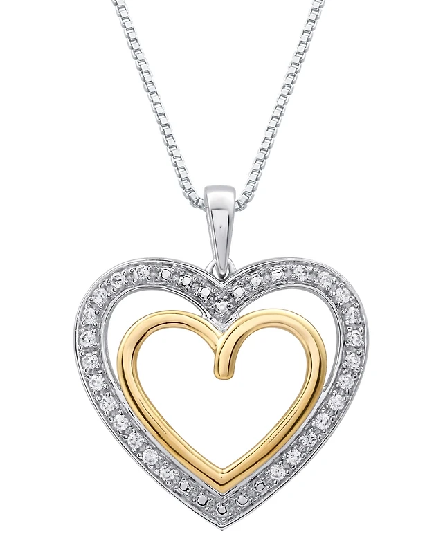 Marsala Diamond Double Heart 18" Pendant Necklace (1/4 ct. t.w.) in Sterling Silver & 14k Gold-Plate