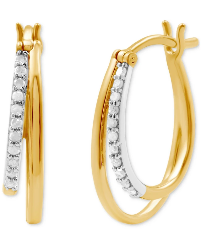 Marsala Diamond & Polished Double Oval Hoop Earrings (1/4 ct. t.w.) in Sterling Silver & 14k Gold-Plate