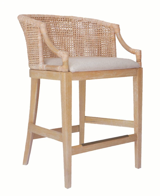 Martha Stewart Playa 23" Handcrafted Rattan Solid Wood Counter Stool