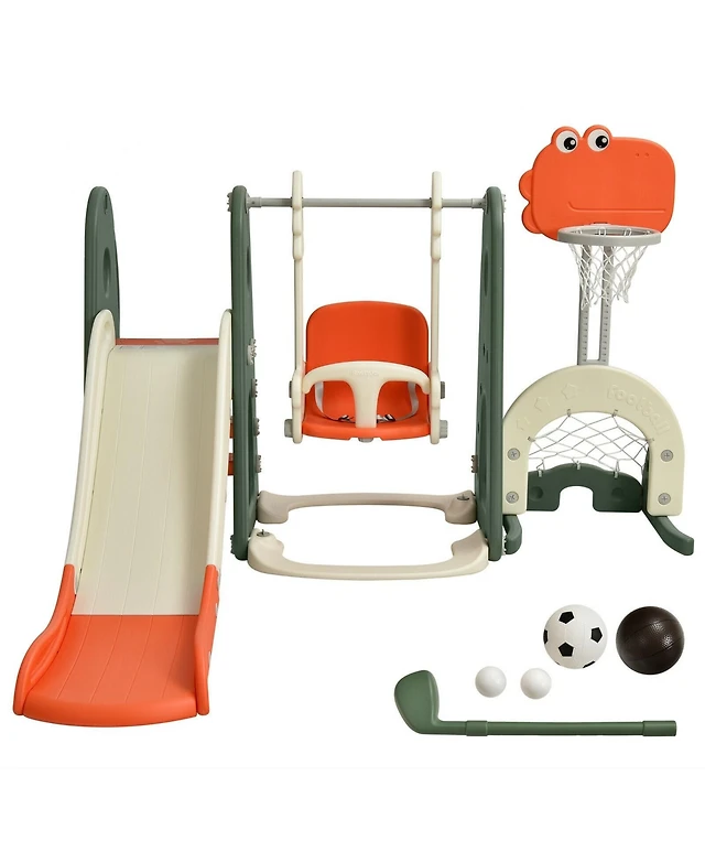 6 in 1 Toddler Slide and Swing Set with Ball Games