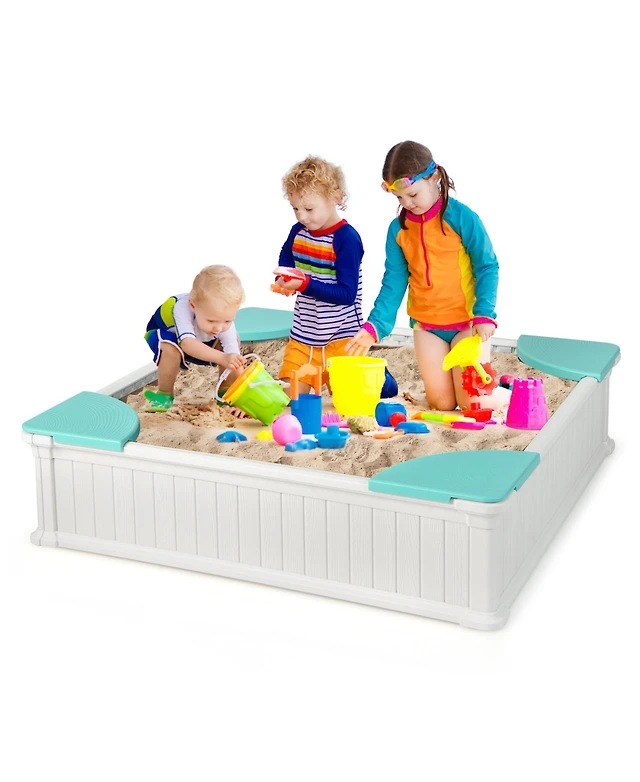 Kids Wooden Sandbox with Striped Canopy
