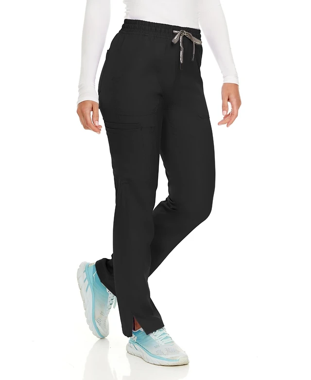 Medichic Women's Terri Stretch Straight Leg Six Pocket Cargo Scrub Pants, Black, Xx Small