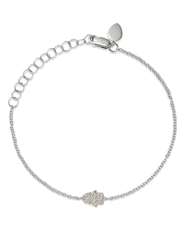 14K White Gold Mini Diamond (0.04 tcw) Hamsa Hand Pendant Necklace, 18"