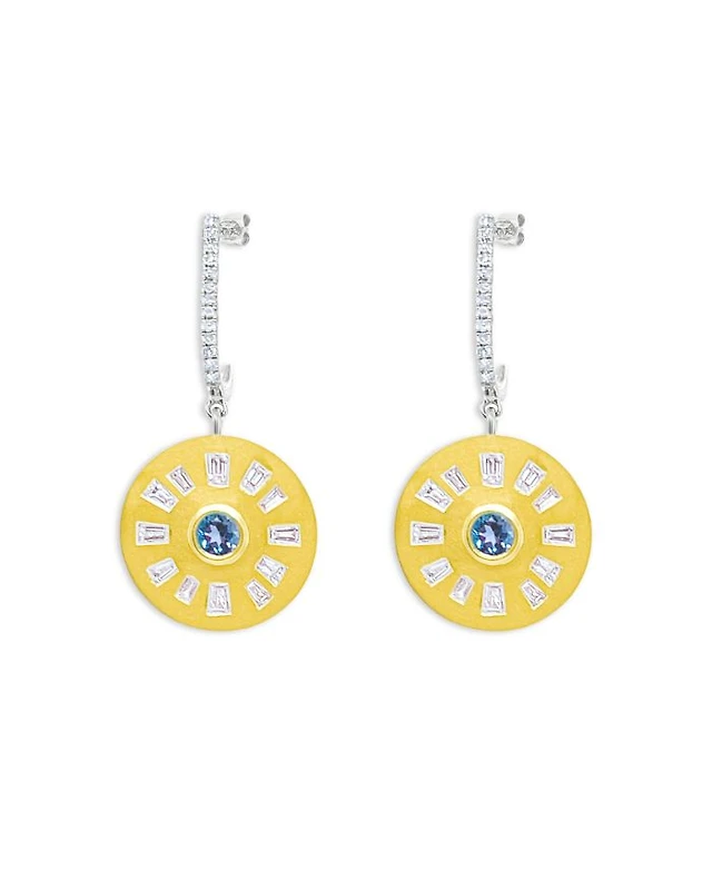 14K Yellow & White Gold Opal & Diamond Evil Eye Drop Earrings