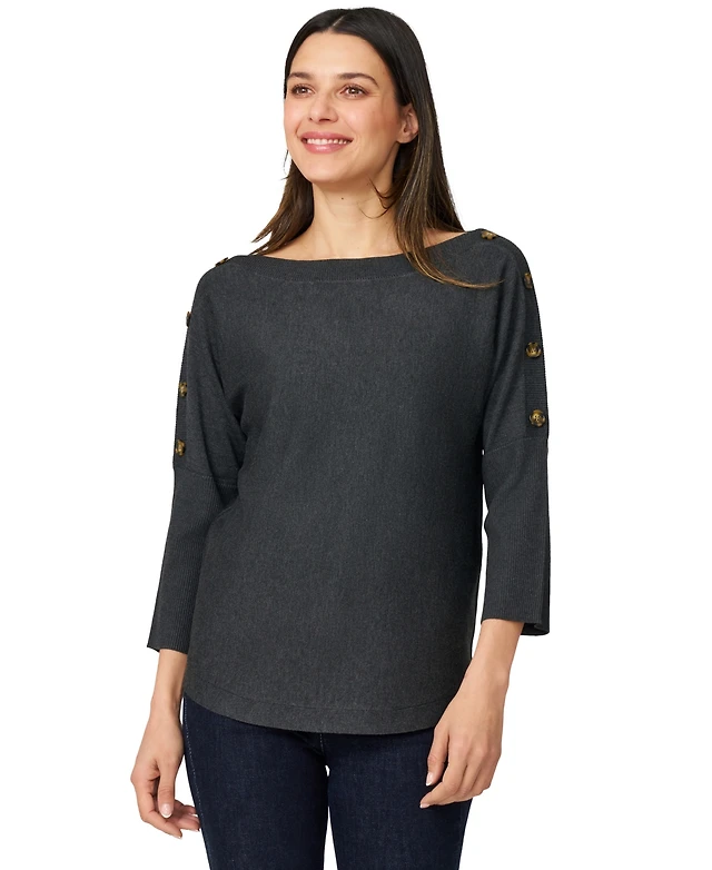 Melissa Paige Women's Boatneck Button-Back Dolman-Sleeve Sweater