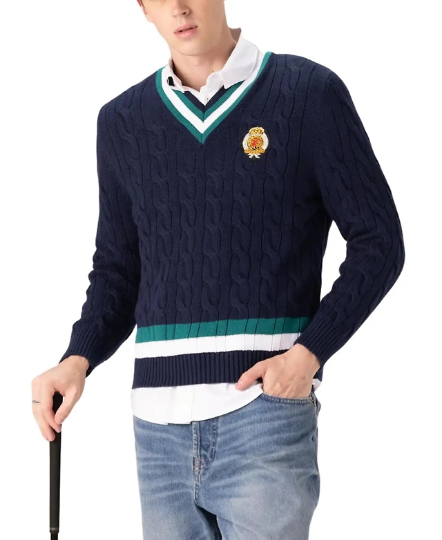 Members Only Men's Cotton Cable Knit Cricket Sweater