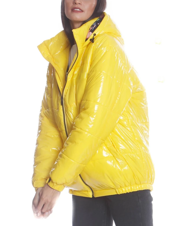 Members Only Women's Hi-Shine Chevron Quilt Puffer with Nickelodeon Mashup Print Lining Jacket