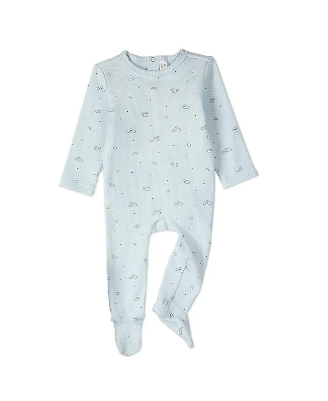MeMoi Baby and Toddler Boys "Clouds of Happiness" Cotton Rich Mini-Ribbed Footie