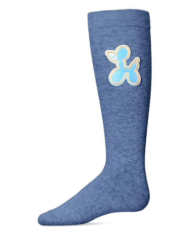 Memoi Big Girls Iridescent Balloon Dog Cotton Blend Knee High Sock