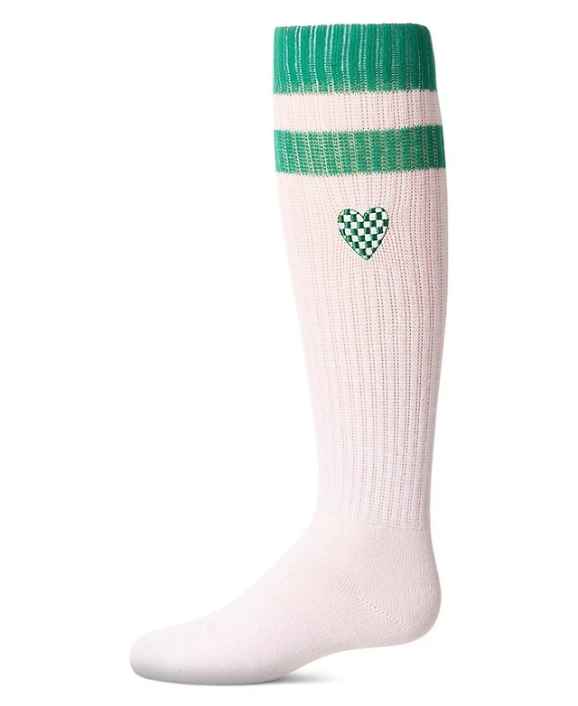 Memoi Little Girls Ribbed Varsity Stripe "Checkered Heart" Cotton Rich Knee Sock
